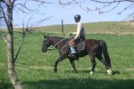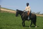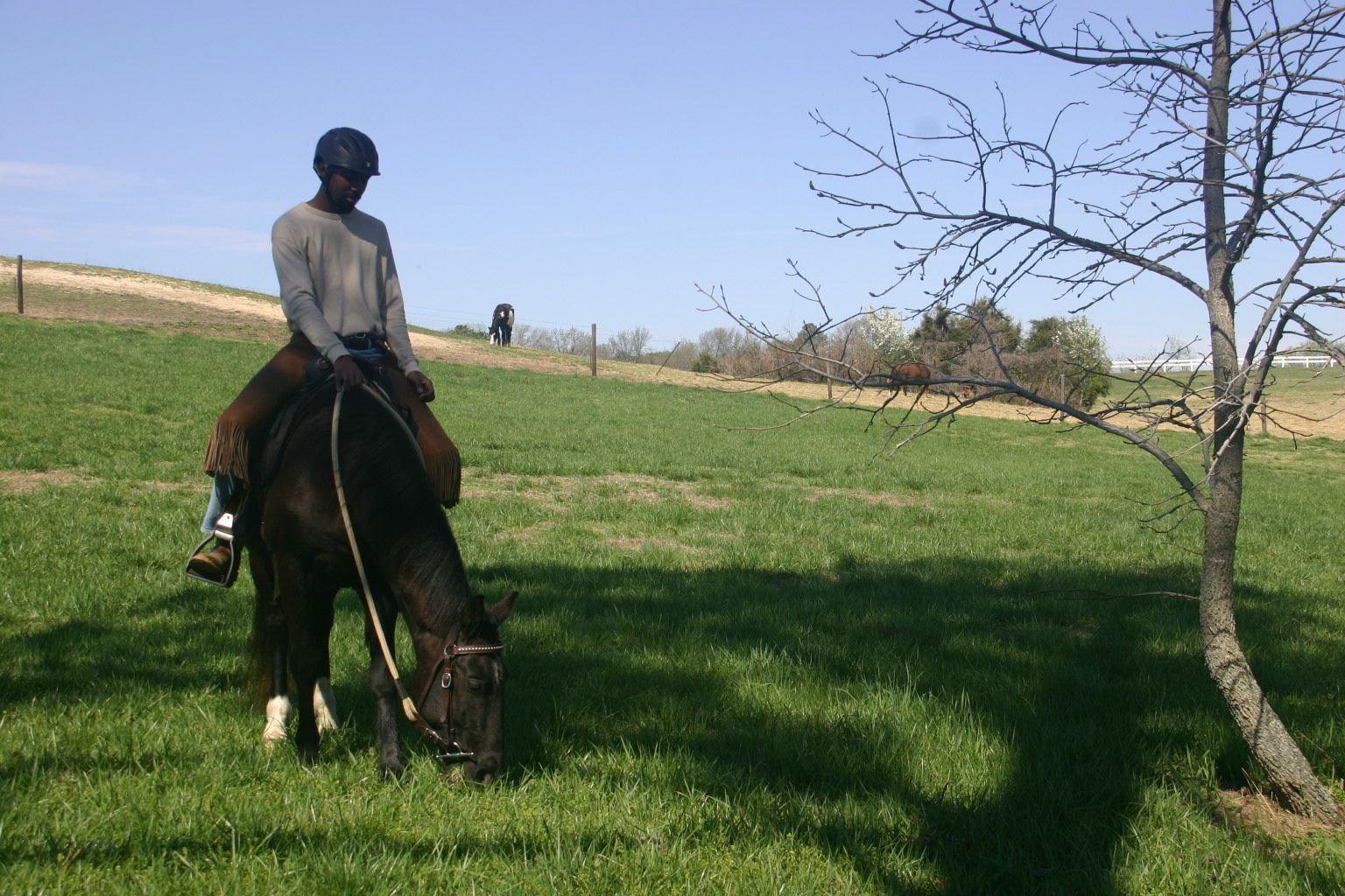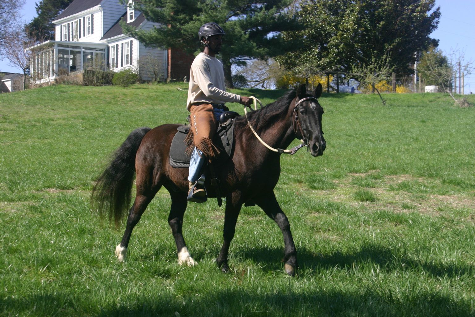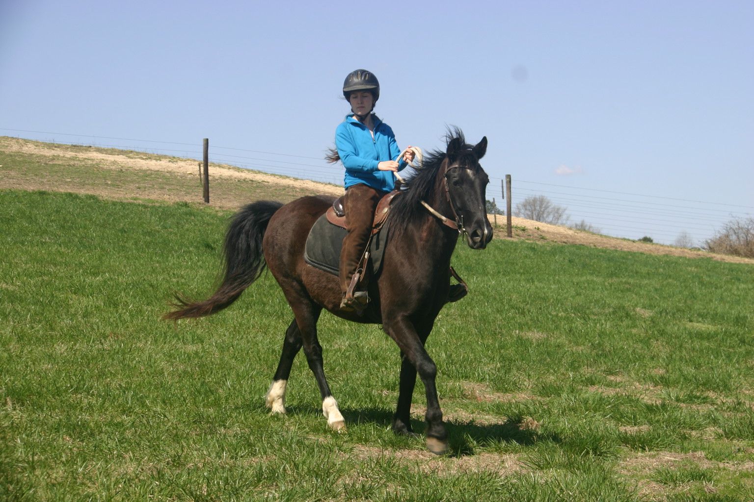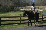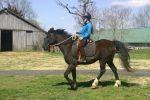 All of these horses were chosen for their wonderful disposition and calmness on trails. Few had formal ring and jumping training before we began working with them. Some are not "finished" horses, but have had several months of gentle, quiet schooling, predominately in the method of John Lyons. They are turned out daily on 60 acres and are happy, easy-to-catch, easy-to-handle companions. Our training emphasizes calm, quiet, happy obedience. They stand quietly while mounting, grooming, saddling, for the farrier, etc. Please call me at 410-586-1617 with any questions that you have and I'll get back to you.
