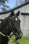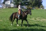 Dillon’s True Grit is an 8 year old, all-black with a star, 15.2 hh registered Tennessee Walking Horse gelding, ID # 20706030. He was originally bought from breeder, Tom T. Hall in North Carolina and has been at our farm for several years. He is a gentle, kind, old-style walking horse that gaits well. We put a couple of months of training on him when he first came and he was smooth and uncomplicated. Dillon has done well in local shows in hand, on the flat and over trail obstacles. His owner has been hit with one health issue after another and has decided to find him a new loving home so that he doesn’t just sit. We are riding him a few times per week and he has been fine, but given the low mileage on him, someone with some experience would need to put some miles on him before he would be ready for a beginner. He is 100% sound and sane and would welcome a job with a kind person. The photos are of Jocelyn, 5'2" and Baris, 6'2". Below the still photos are four videos of Dillon.. Contact Linda by voice only